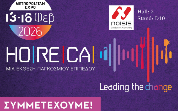 Η Noisis Σύμβουλοι Ανάπτυξης Α.Ε. σας προσκαλεί στην έκθεση HORECA 2026 που θα διεξαχθεί από Παρασκευή 13 έως και Δευτέρα 16 Φεβρουαρίου 2026 στο Εκθεσιακό Κέντρο Metropolitan Expo.